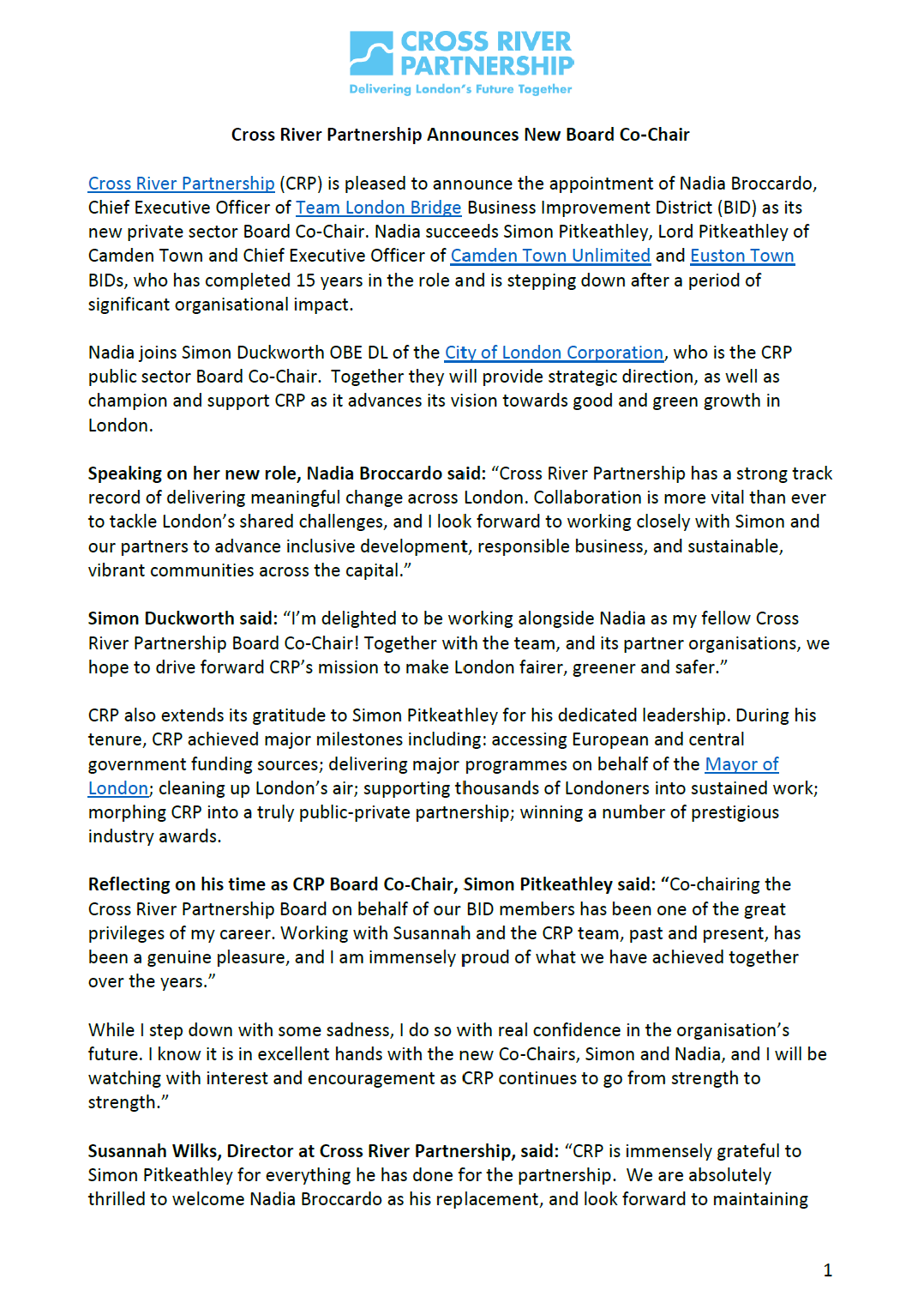 PRESS: CRP Welcomes New Board Co-Chair January 2026